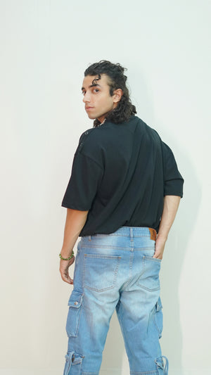 Designed in a classic black shade with Beatbob’s signature branding, this tee carries an understated yet bold presence. Its relaxed fit makes it versatile—ideal for layering or wearing solo, styled with cargos, denim, or joggers.