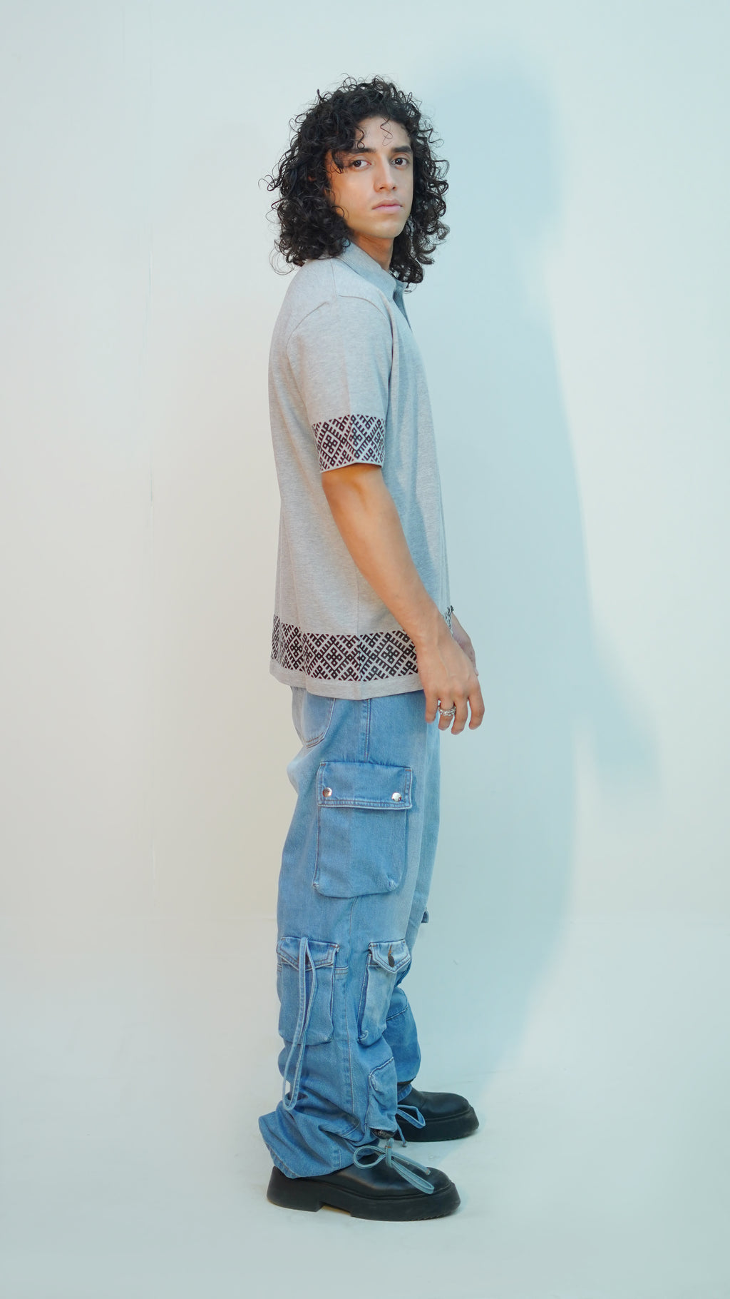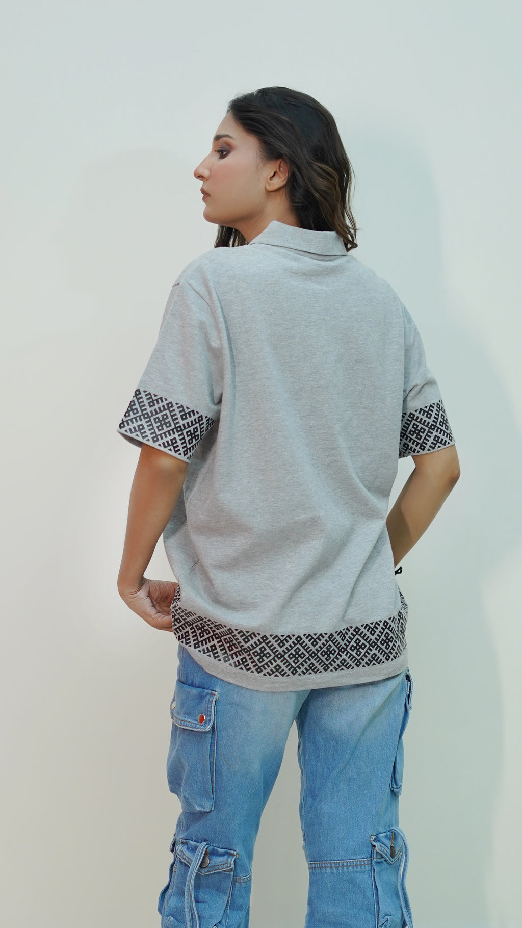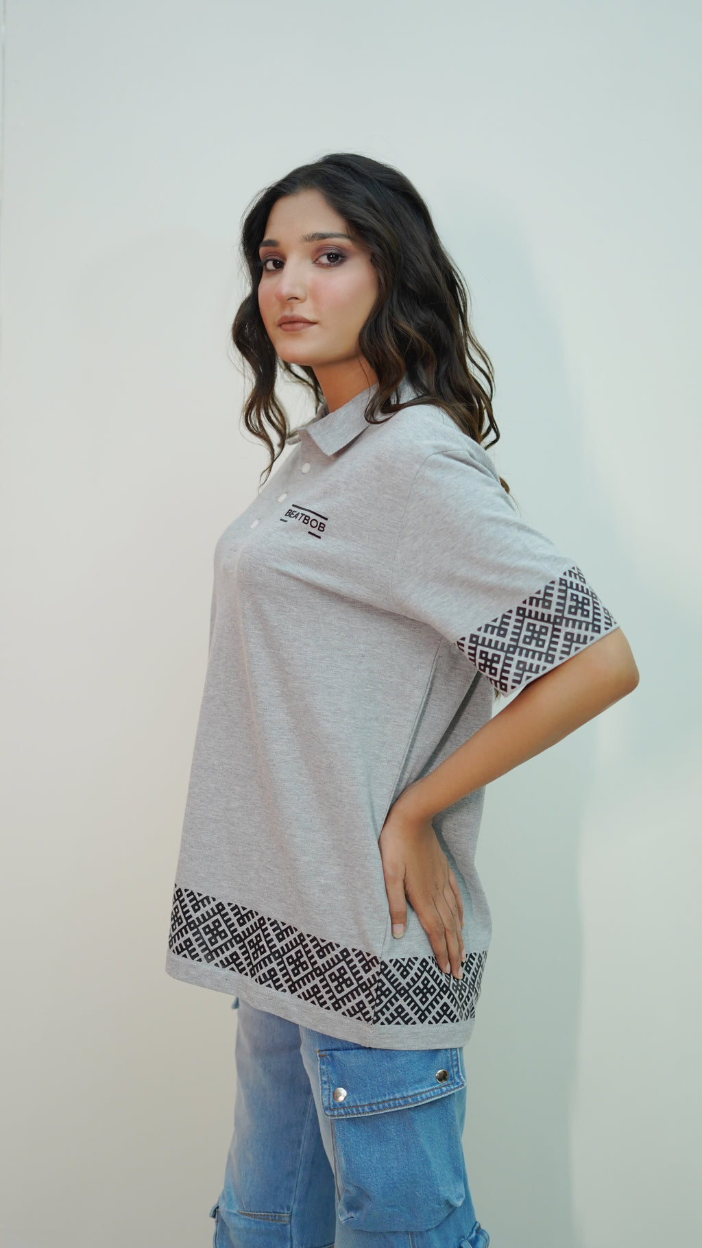 Its subtle gray base is elevated by a bold black print, giving the polo a contemporary edge while retaining its classic collar silhouette. Breathable and versatile, the Indiana Polo is perfect for everyday wear or styled up for an evening out.