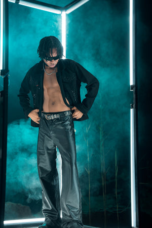 "Make a bold fashion statement with this black denim jacket, enhanced with edgy net detailing for a modern twist. The classic denim design offers durability and a timeless appeal, while the net accents add a touch of rebellious flair and breathability. Perfect for layering, this jacket seamlessly blends casual cool with an urban vibe. Whether you're dressing up or down, this versatile piece adds an effortlessly stylish edge to any outfit, making it an essential addition to your wardrobe."
