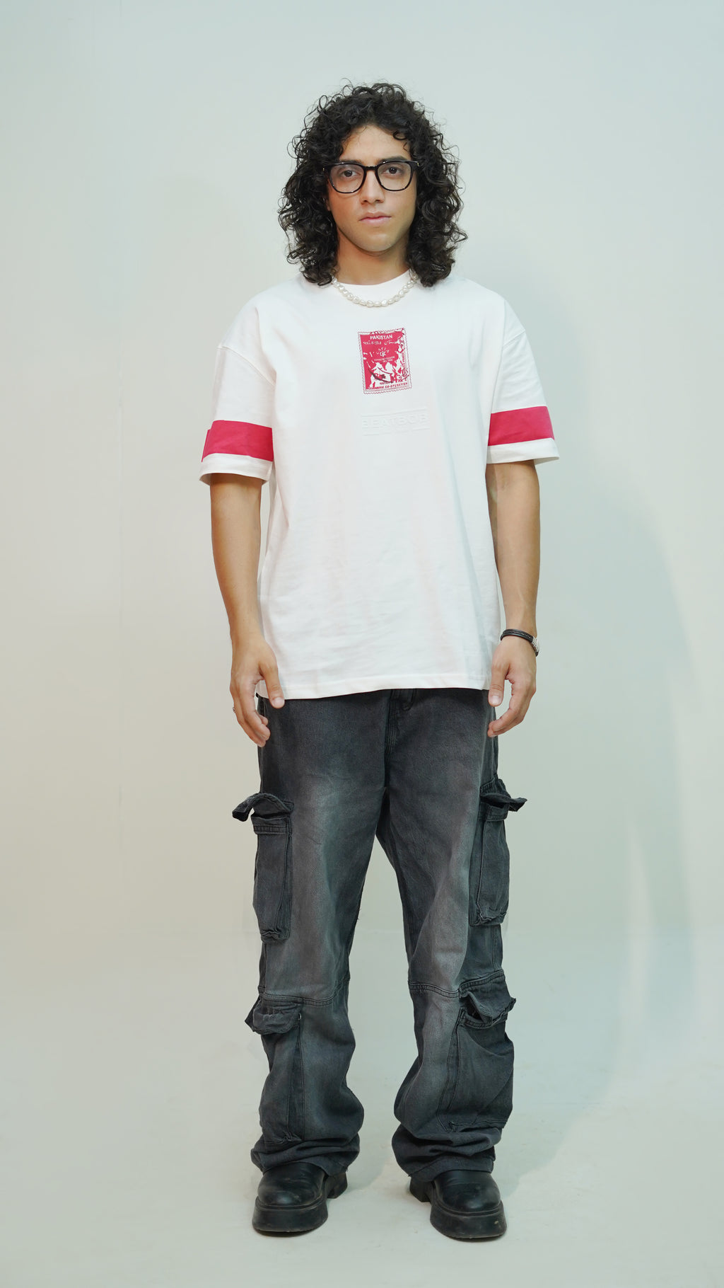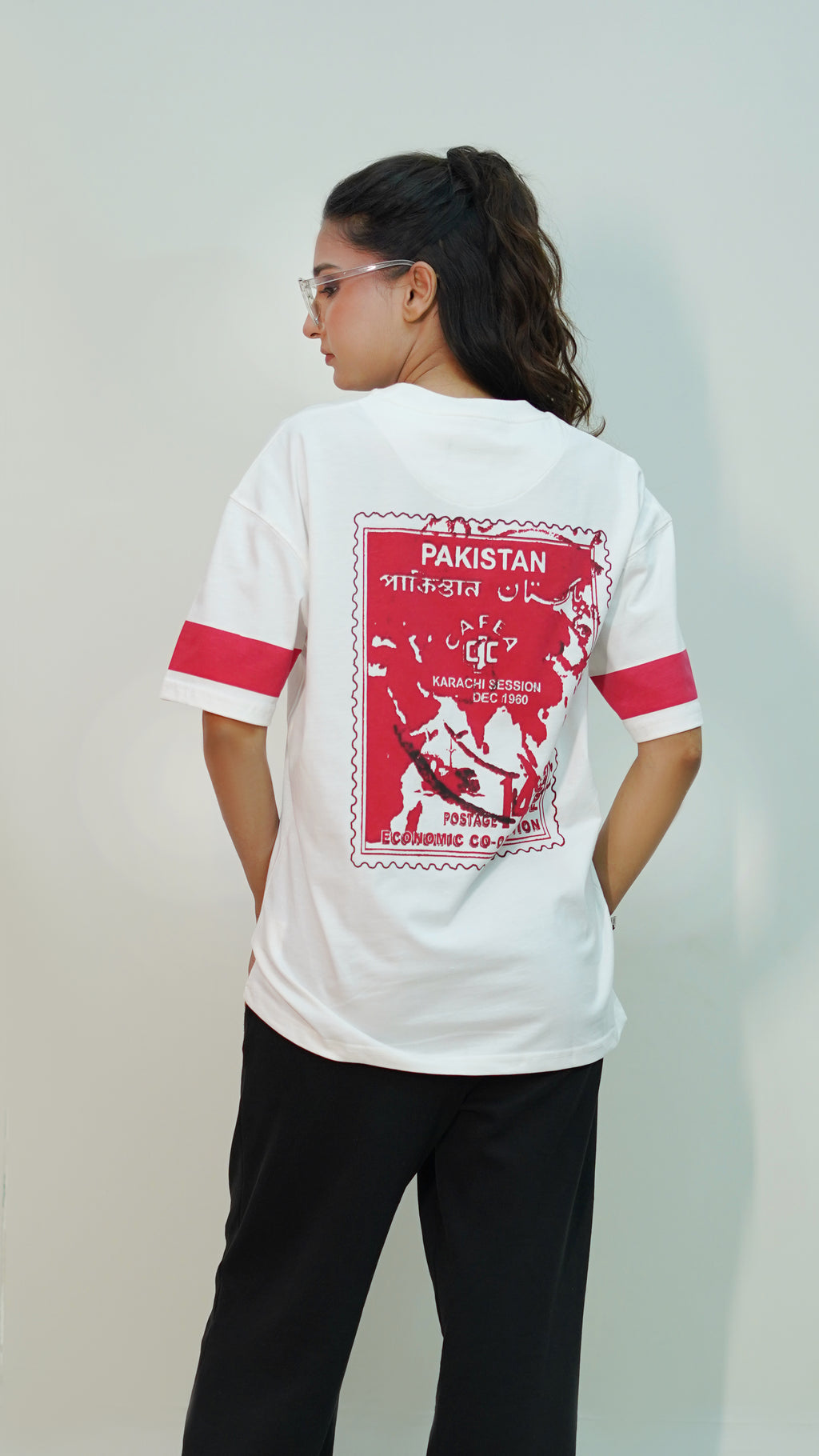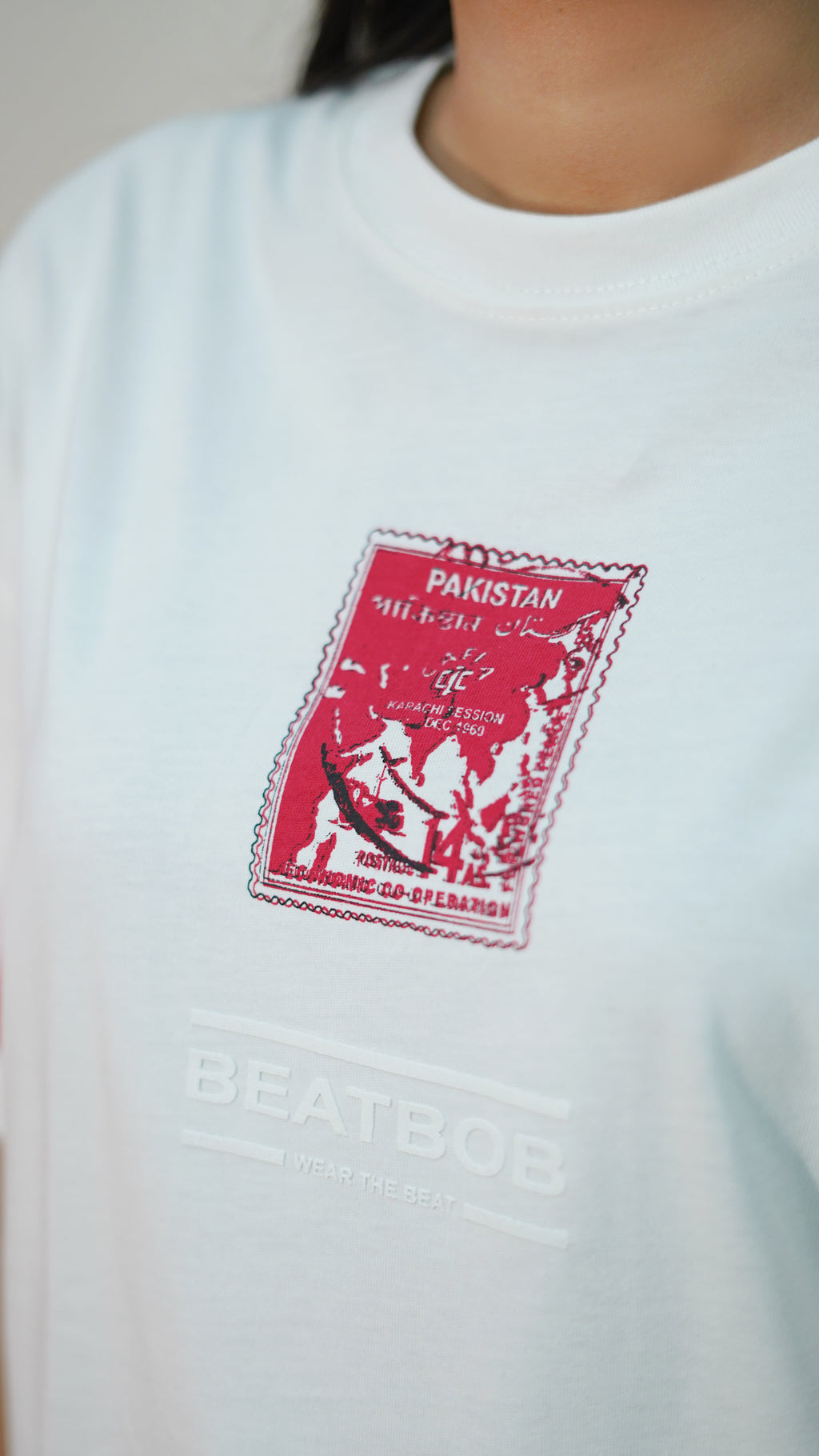 The clean white base is contrasted with a Pakistan-themed stamp graphic, giving it a distinct, cultural edge while keeping the design minimal and modern. With its relaxed fit and premium cotton feel, this tee makes a statement in both streetwear and casual styling.