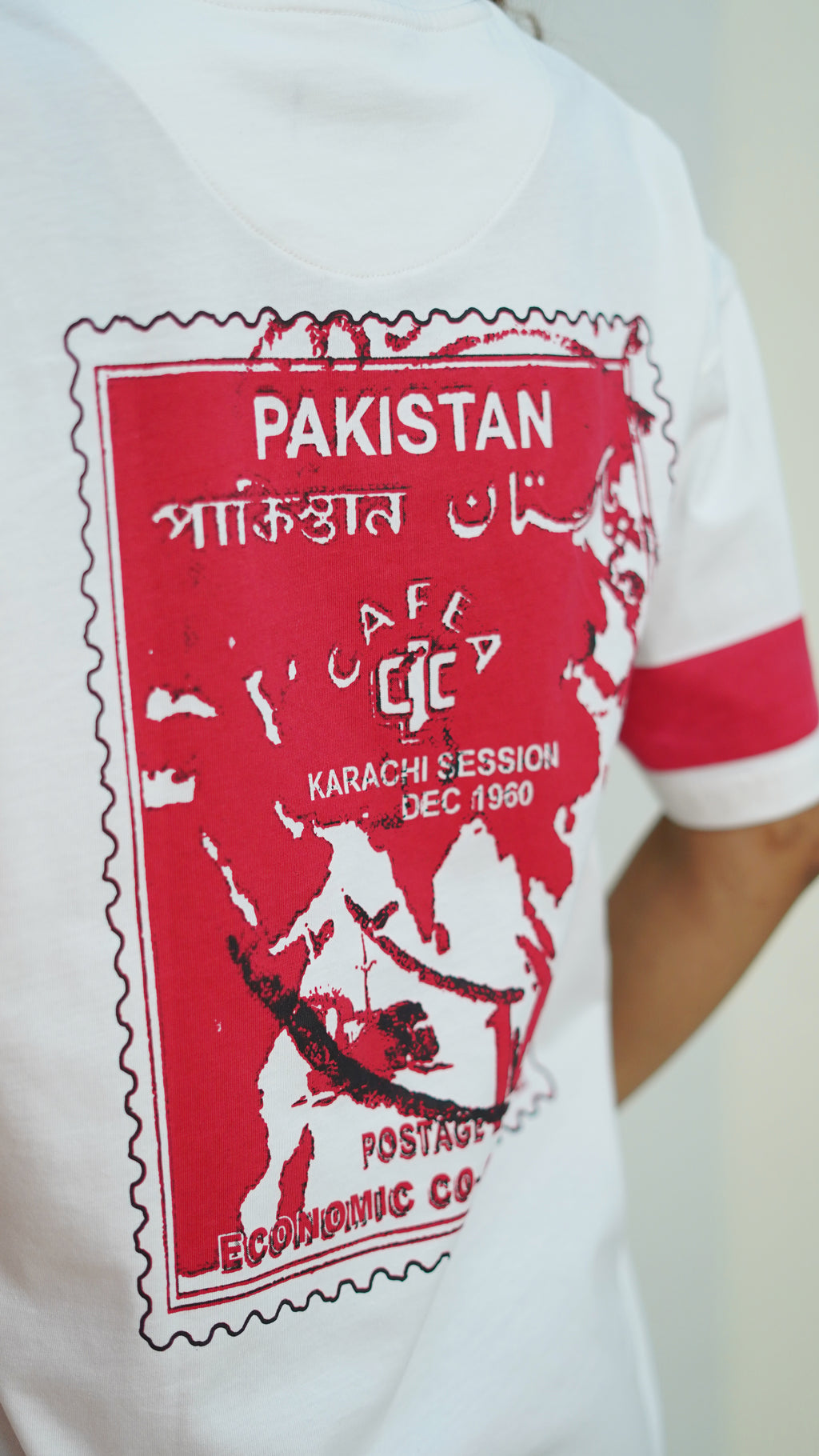 - Design: Pakistan stamp-inspired front graphic