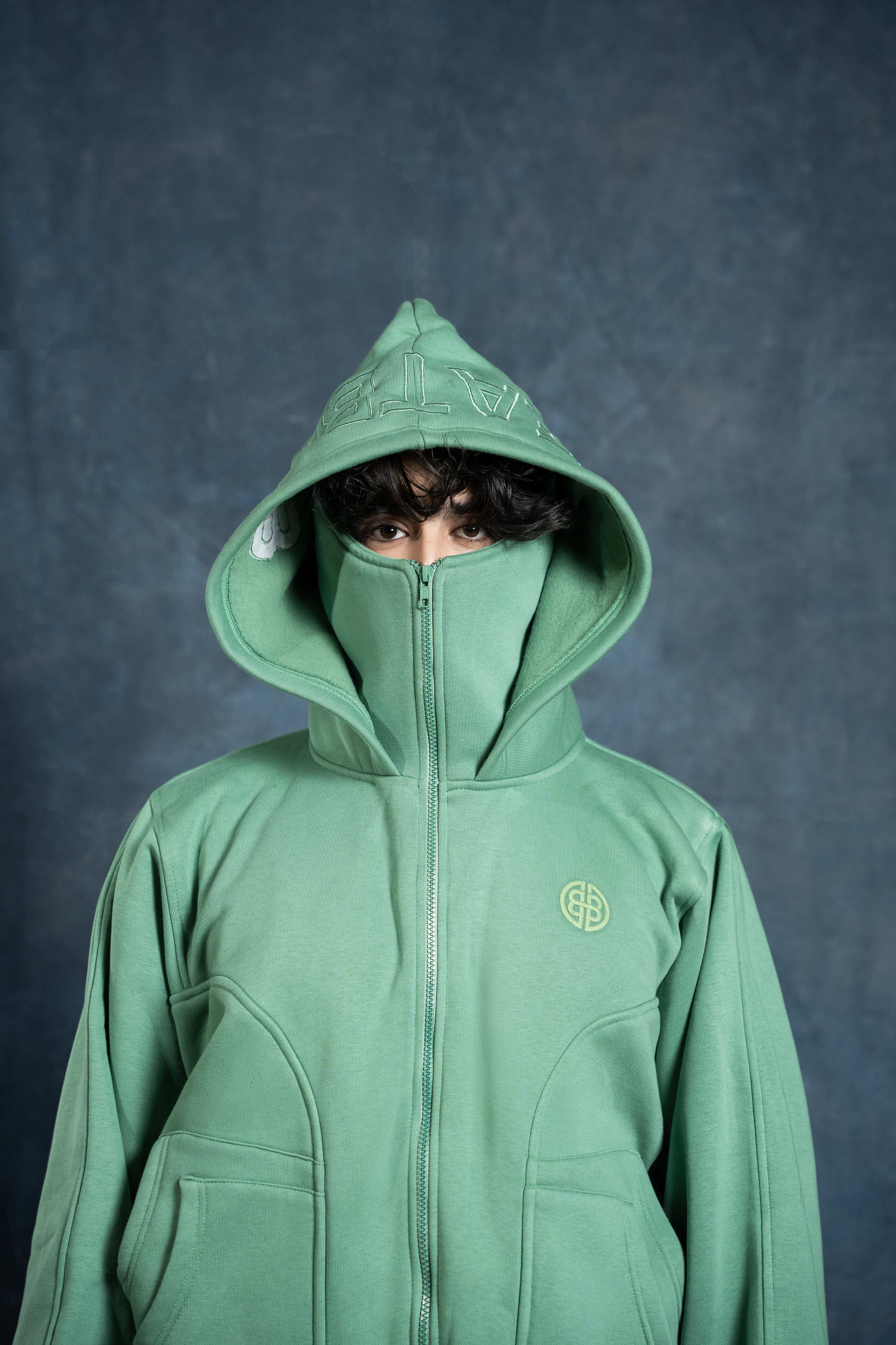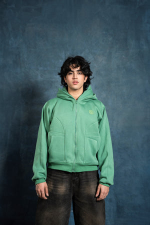 "Experience ultimate warmth and style with this innovative green hoodie, crafted from a thick 380 GSM fabric for superior insulation. This hoodie features a unique double hood design, offering extra protection against the cold. The first hood is designed to cover your face and head, providing full coverage and warmth, while the second hood fits comfortably over your head for added coziness. Perfect for cold weather, this hoodie blends functionality with a modern look, ensuring you stay warm, comfortable, and stylish no matter the conditions."